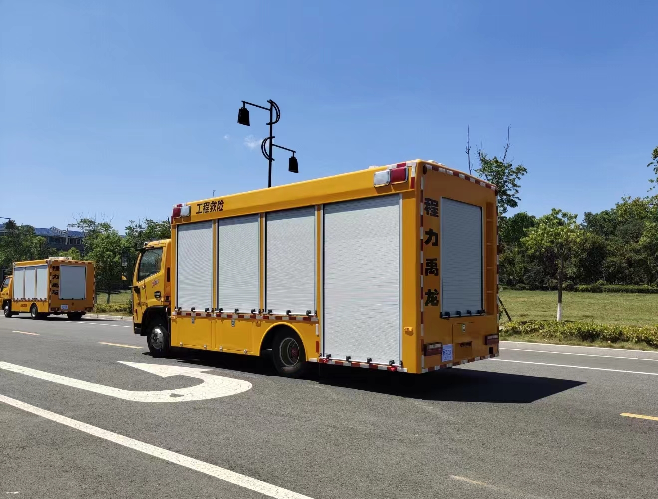 | 上裝配置 | 1、廂體外形尺寸根據(jù)實際公告標(biāo)準(zhǔn)。 廂體:具備運輸、防雨、防火、阻燃、防塵、防銹、降燥,隔震、長期抗震結(jié)構(gòu)。外部鋼材為優(yōu)質(zhì)冷軋鋼板,表面處理平整,內(nèi)襯優(yōu)質(zhì)冷軋鋼板折彎骨架,強度牢固,配重合理。 2、廂體一體化鋼體結(jié)構(gòu)設(shè)計, 頂部平坦。廂體采用骨架式夾層形式,外蒙皮采用厚1.5mm優(yōu)質(zhì)防銹處理的汽車專用冷軋鋼板,中間骨架采用防銹處理后的鋼管焊接,頂層、側(cè)圍內(nèi)、外層之間填充長時間使用對人體無害的防火阻燃環(huán)保吸音棉,外層鋪蓋一層阻燃金屬布,內(nèi)飾采用0.8mm厚網(wǎng)孔板。底板采用鋼結(jié)構(gòu)底框架,上表面鋪厚2mm花紋鋼板。 3、車輛廂體采用整體包覆式,廂體兩側(cè)下部設(shè)置裙邊式,全封閉式結(jié)構(gòu),頂部為圓弧型,尾部有轉(zhuǎn)向燈、剎車燈、尾燈、霧燈,箱體表面光滑平整。車廂靠駕駛室前部為休息室,休息室內(nèi)帶折疊坐椅及折疊桌,往后為機組室,機組室左、右側(cè)布置進(jìn)排風(fēng)百窗,設(shè)置機組檢修門一個,下置登車踏步梯,車廂后端為后為卷簾門。右側(cè)排風(fēng)百葉窗下部為維修觀察艙門。左側(cè)下圍設(shè)置有工具箱及功能艙門等。右側(cè)下圍設(shè)置有汽車油箱艙、液壓控制艙等。 4、車廂尾部配置標(biāo)準(zhǔn)儲物貨架讓出水帶、加長電纜等附件存放有序、互不干涉,讓緊急排水搶險變得更加快捷、有效。 5、廂體噴漆:工程黃,與車頭同一顏色; 6、最終的門數(shù),形式,打開方式嚴(yán)格按照合同要求依據(jù)程力公告生產(chǎn); | ||