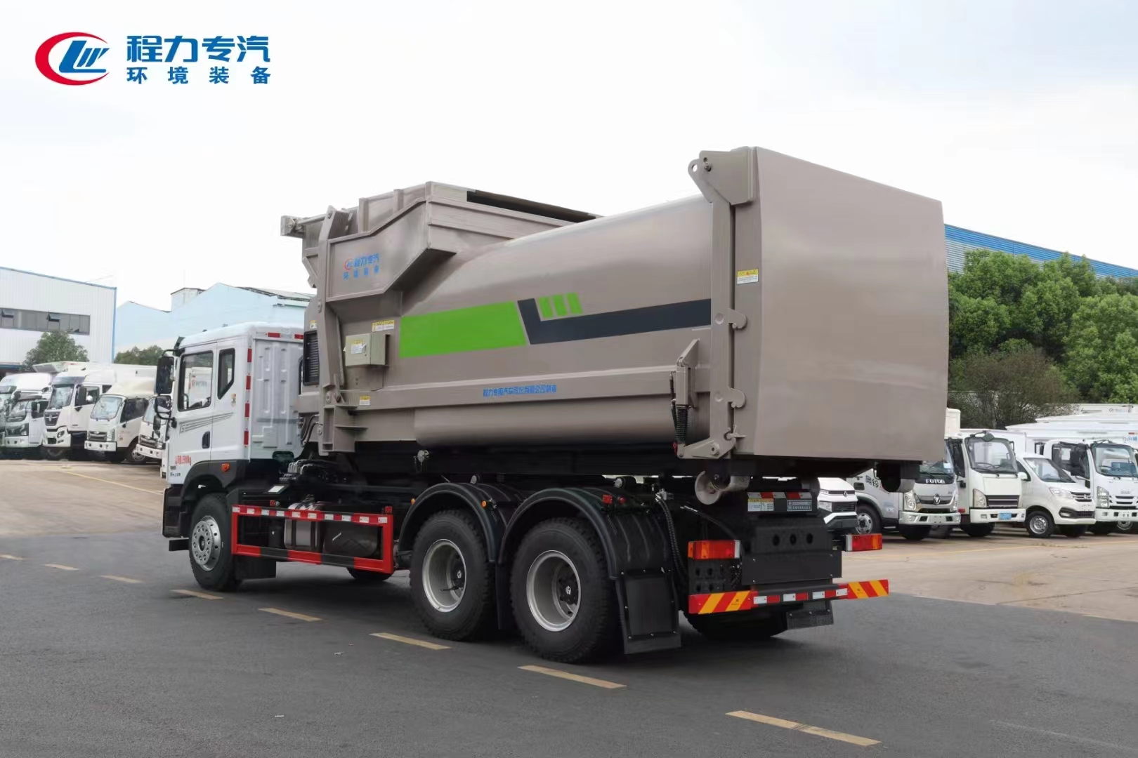 ??????湖北程力汽車:程力專汽東風(fēng)華神后雙橋勾臂垃圾車+移動(dòng)壓縮箱產(chǎn)品型號(hào)及參數(shù)配置,程力專汽東風(fēng)華神后雙橋勾臂垃圾車+移動(dòng)壓縮箱高清圖片,程力汽車系列程力專汽東風(fēng)華神后雙橋勾臂垃圾車+移動(dòng)壓縮箱最新報(bào)價(jià)請(qǐng)撥打客服熱線。車輛主要配置 產(chǎn)品名稱: 程力威牌CLW5253ZXXBHJ車廂可卸式垃圾車 外形尺寸: 828025503170(mm) 排放水平: 國六 貨箱尺寸: (mm) 總質(zhì)量: 25000(Kg) 接近/離去角: 15/19,15/20,15/21() 額定質(zhì)量: 14250,14185(Kg) 前懸后...