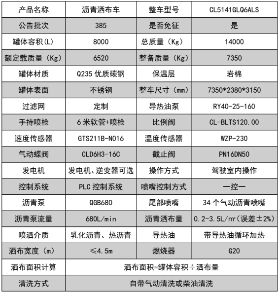 ??????湖北程力汽車:程力CL5141GLQ6ALS陜汽德龍8立方瀝青灑布車產(chǎn)品型號(hào)及參數(shù)配置,程力CL5141GLQ6ALS陜汽德龍8立方瀝青灑布車高清圖片,程力汽車系列程力CL5141GLQ6ALS陜汽德龍8立方瀝青灑布車最新報(bào)價(jià)請(qǐng)撥打客服熱線。車輛主要配置 產(chǎn)品商標(biāo) 程力牌 公告批次 385 產(chǎn)品名稱 瀝青灑布車 產(chǎn)品型號(hào) CL5141GLQ6ALS 總質(zhì)量(Kg) 14000 罐體容積(m3) 7.52 額定載質(zhì)量(Kg) 6520,6455 外形尺寸(mm) 7350,7390 × 2380 × 3150 整備質(zhì)量(Kg) 73...