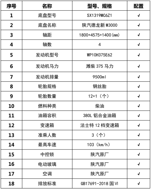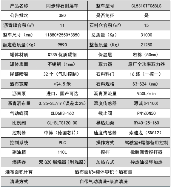 ??????湖北程力汽車:程力CL5310TFC6BLS型陜汽德龍前四后八瀝青碎石同步封層車產(chǎn)品型號及參數(shù)配置,程力CL5310TFC6BLS型陜汽德龍前四后八瀝青碎石同步封層車高清圖片,程力汽車系列程力CL5310TFC6BLS型陜汽德龍前四后八瀝青碎石同步封層車最新報價請撥打客服熱線。車輛主要配置 產(chǎn)品商標(biāo) 程力牌 公告批次 382(擴展) 產(chǎn)品名稱 同步碎石封層車 產(chǎn)品型號 CL5310TFC6BLS 總質(zhì)量(Kg) 31000 罐體容積(m3) 額定載質(zhì)量(Kg) 9590,9525 外形尺寸(mm) 11080,11280,11880 × 2550 × 385...