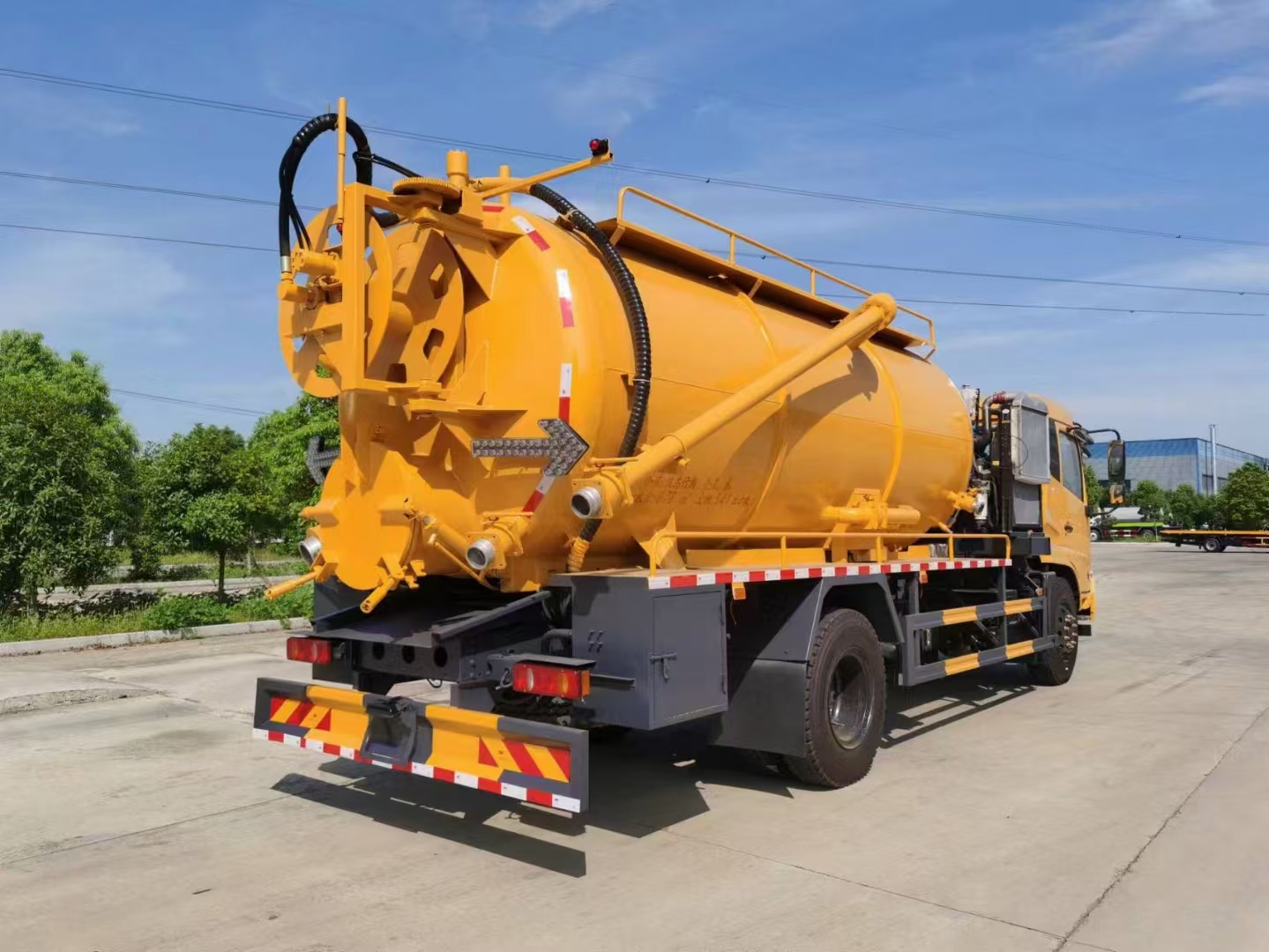 | 上裝配置 | 罐體容積15立方左右,清水罐5立方,其余為污水,罐體8mm厚,封頭8mm厚,舉升頂為自卸中置頂,副駕駛一側(cè)清水罐和污水罐用DN100球閥互通,另罐頂裝一個(gè)互通,副駕駛一側(cè)按照公告圖片安裝爬梯;清水罐:品孚350高壓泵,罐頂水車罐口一個(gè),帶爬梯,高壓管100米22號(hào)高壓管,尾部液壓卷盤(pán),左右各裝一個(gè)消防栓進(jìn)水口,清水罐裝兩側(cè)各一個(gè)小球閥,罐底裝一個(gè)DN65排水閥, 吸污罐:一個(gè)散水罐口,罐體內(nèi)部鋪1.2米不銹鋼板,罐內(nèi)爬梯,罐體內(nèi)部防浪板加固,水循環(huán)泵水箱為碳鋼材質(zhì).副發(fā)濰柴375馬力配SK-30水循環(huán)泵,副駕側(cè)排150鋁合金球閥,開(kāi)600小蓋排污口,尾部600小蓋左側(cè)一個(gè)150排污口,右側(cè)一個(gè)100的進(jìn)料口,側(cè)邊一個(gè)100排清水,罐體尾部?jī)蓚?cè)工具箱,1根10米吸污管,箭頭燈,手動(dòng)油門… | ||