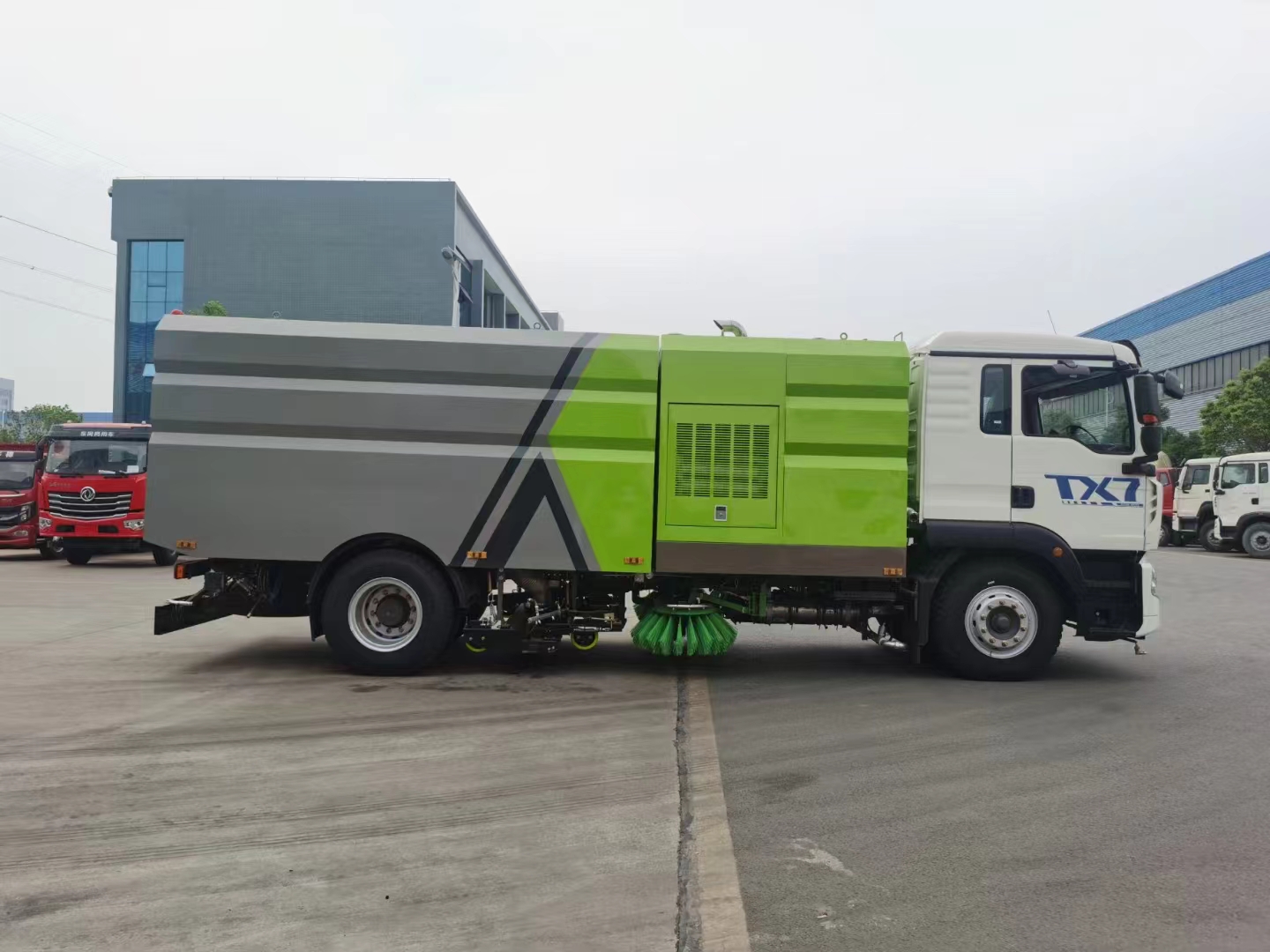 | 上裝配置 | 副發(fā)康機170馬力,廈門南超免維護自動離合器,免維護風機,海德瑞沃電磁閥組,德國進口高壓泵,萬向高壓路沿清洗,耐磨液壓油缸,西門子電控開關,左右、后噴霧壓塵系統(tǒng),不銹鋼垃圾箱及碳鋼水箱電泳防銹處理,水箱容積9立方左右,垃圾箱容積7立方左右,最大清寬度3.5米,前置兩掃盤,中置吸盤,手動泵應急系統(tǒng),多種語音報警尾部箭頭燈。 隨車配備低壓沖洗前沖后灑及高壓沖洗功能(前路沿沖洗/中沖/20米高壓沖洗卷盤/后噴霧/垃圾箱自潔)尾部箭頭作業(yè)燈。 | ||